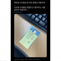 화장실 다녀 온 사이 자리에 팀장님 카드가..