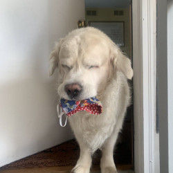 졸린 눈으로 마스크 들고 쫒아 나온 댕댕이