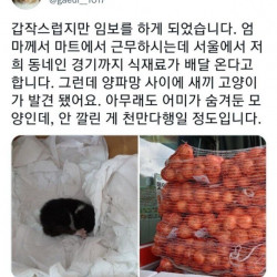 양파 속에서 발견된 새끼 고양이 양파
