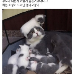 육아에 지친 엄마냥의 표정.jpg