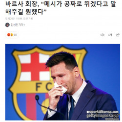 바르사 회장, “메시가 공짜로 뛰겠다고 말해주길 원했다”