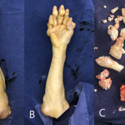 약혐 ))심각한 통풍환자 손과 팔에서 나온 요산 결정체