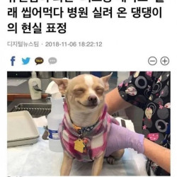 주인이 놔둔 의료용 대마초 몰래 씹어먹다 병원 실려온 댕댕이 표정