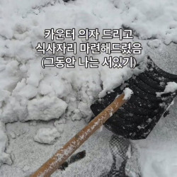 식사공간 내드렸더니 편의점 앞 쌓인 눈 치워준 굴착기 기사님