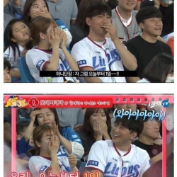야구장 키스타임에 걸린 남녀