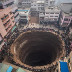 중국 주택가에 초대형 싱크홀??