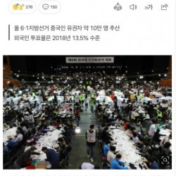 국내 10만 중국인 투표권 박탈 추진