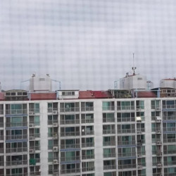 아파트 옥상에서 고추 말리는 아주머니