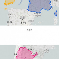한국과 다른나라의 크기와 인구 비교