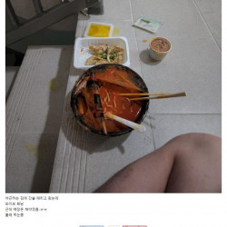 아파트 계단에서 짬뽕먹는 유부남