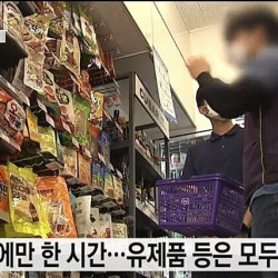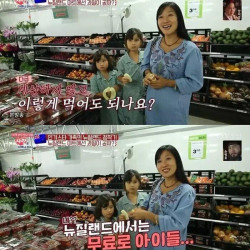 마트에서 계산도 안하고 그냥 과일 까먹는 아이들