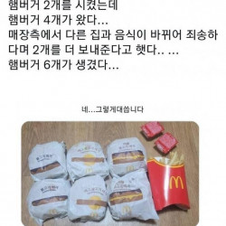 햄버거 2개를 시켰는데 4개가 왔다.