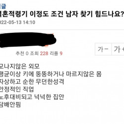 결혼적령기 이정도 남자 찾기 힘든가요?