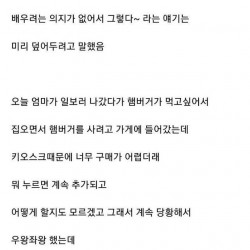 울엄마 키오스크땜에 햄버거 못사고 나와서 울었어