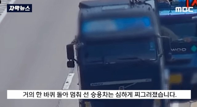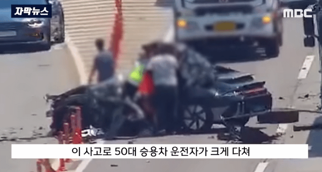 경부고속도로 화물차 사고 현장.. 뒤에 오던 승용차가 그대로 들이받는 사고