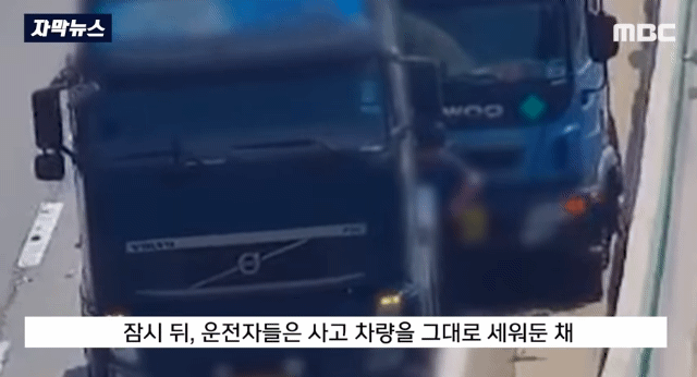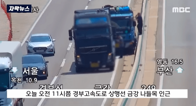 경부고속도로에서 화물차들끼리 추돌 사고가남.. 1차로에 멈춰선 상태에서 사고 수습을 하던중..