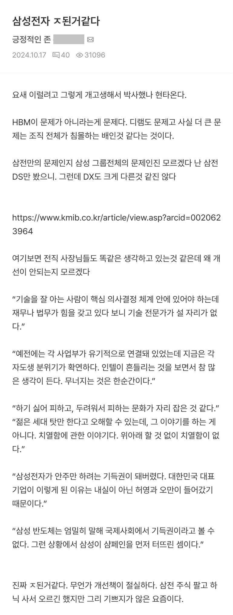 삼전 연구원이 쓴 삼성이 ㅈ된 이유.jpg