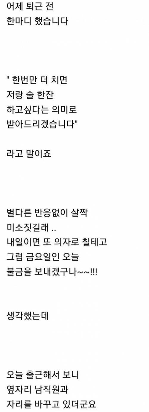 나와 술 마시고 싶어하는 여직원