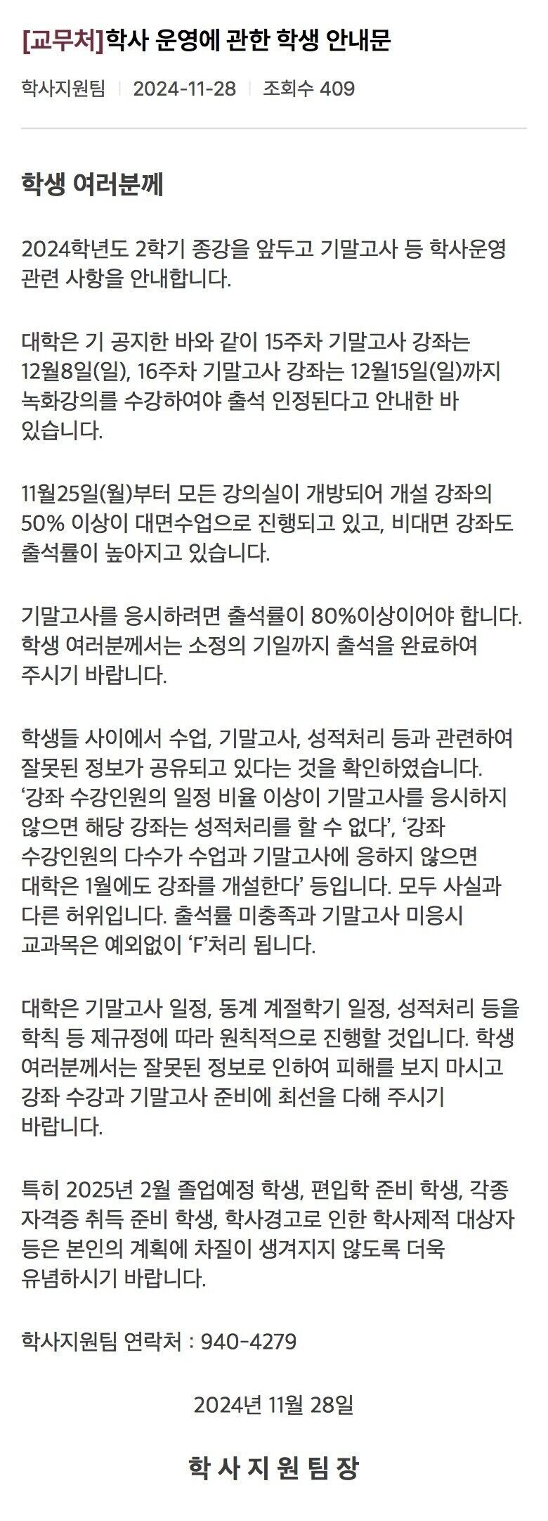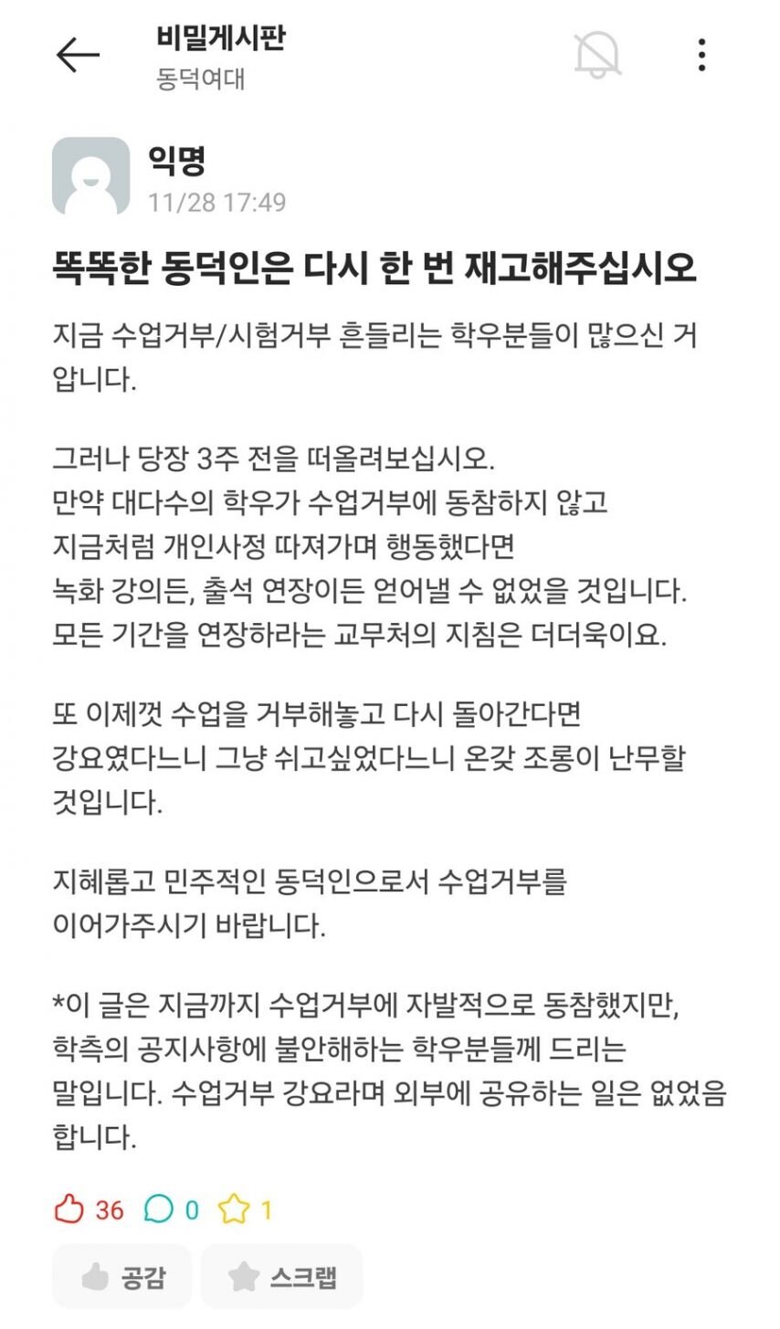 동덕여대 학교측 F학점 공지...'수업거부 시위대 내분'