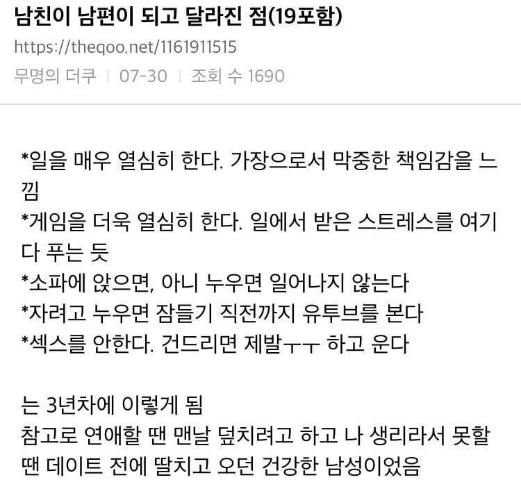 남자친구가 남편이 되고 달라진 점