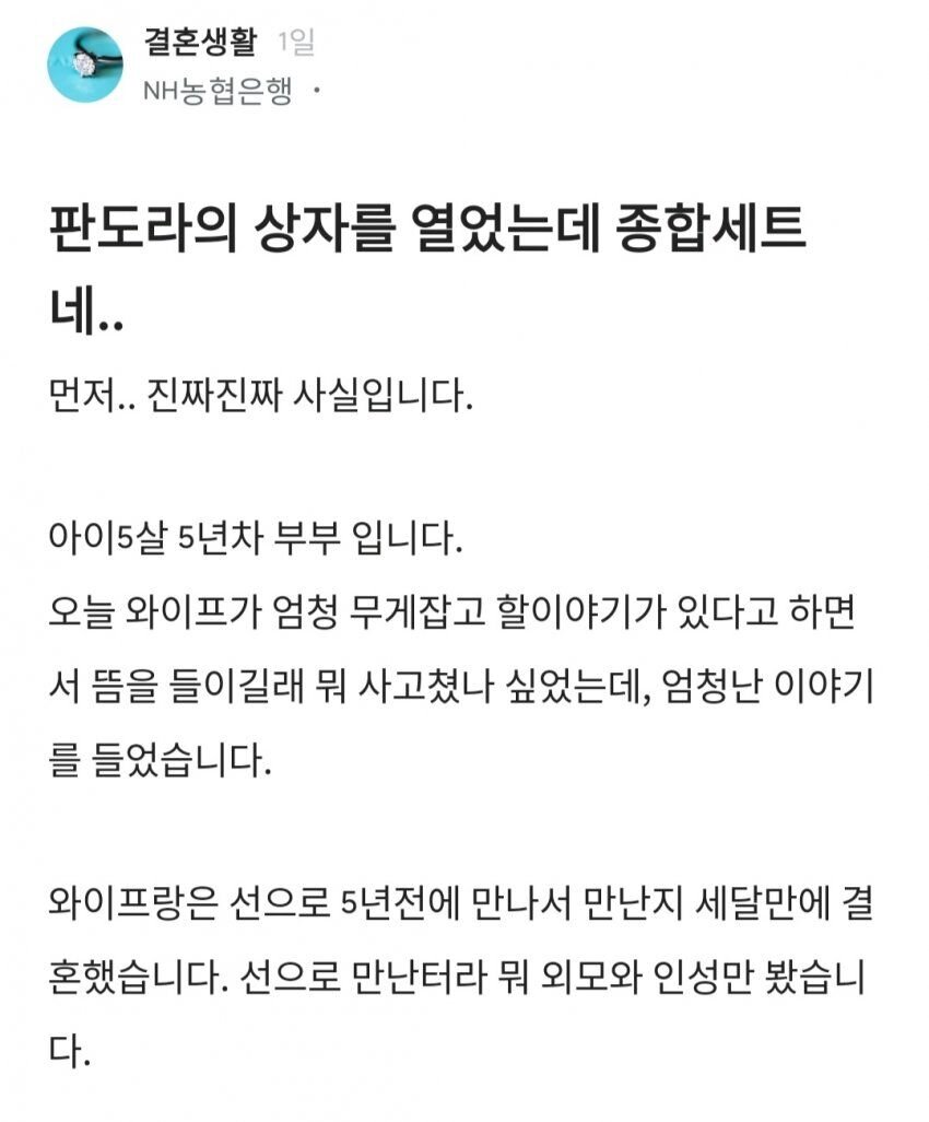 와이프가 충격 고백해서 난리난 농협남