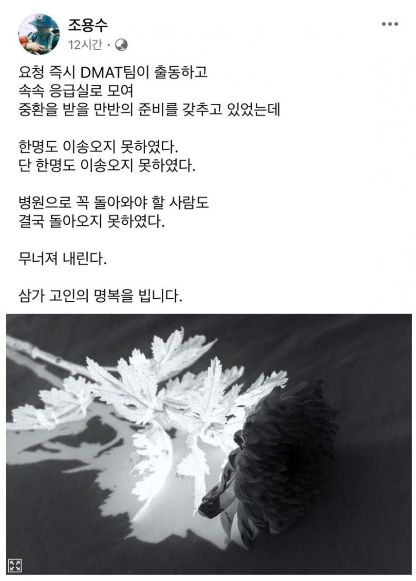 조용수 전남대 응급의학과 교수 페북 글