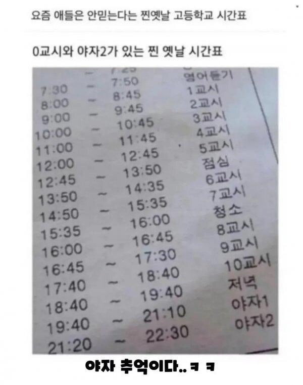요즘 애들은 안믿는 고등학교 시간표.jpg